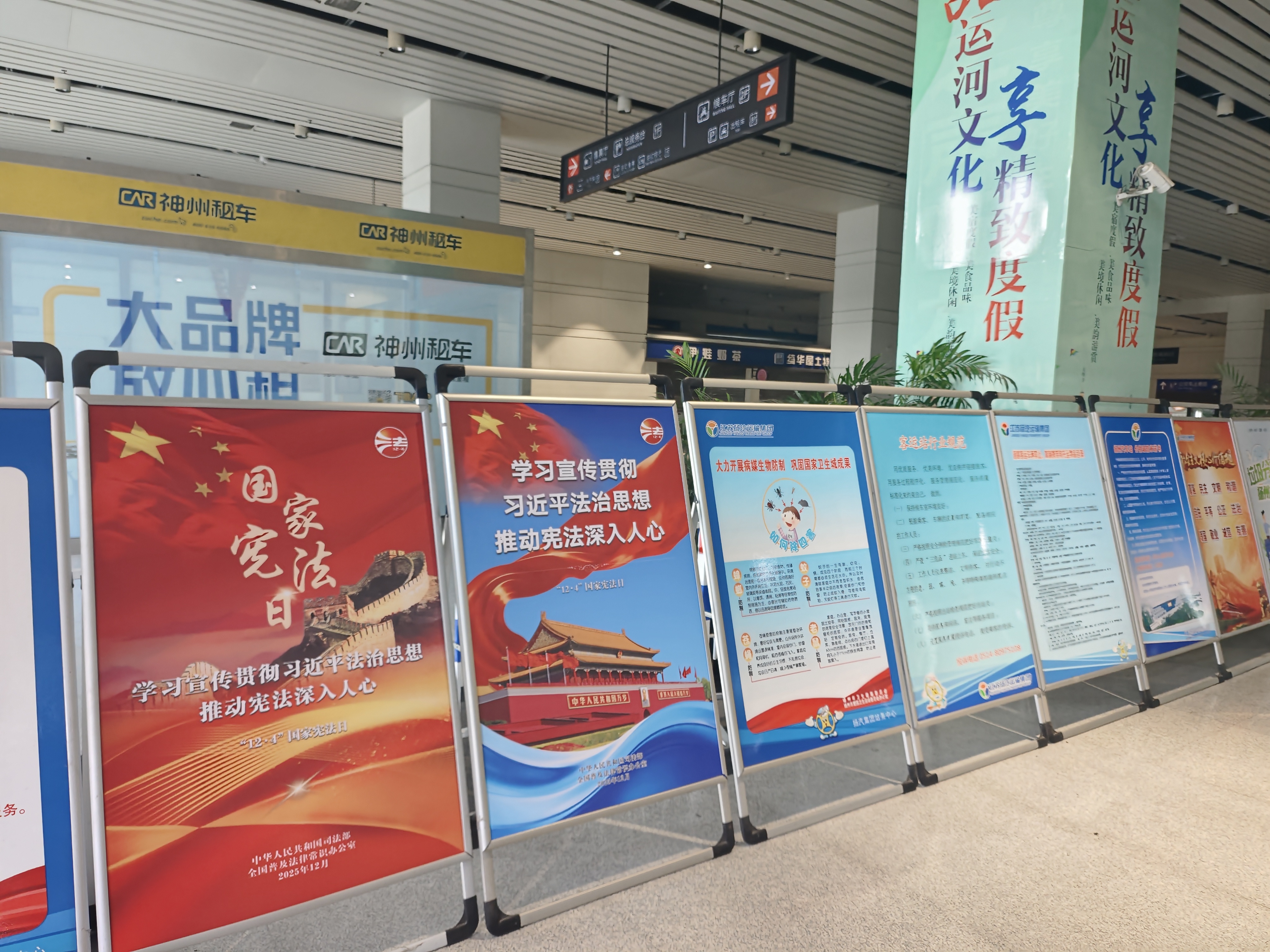 為營造濃厚宣傳氛圍,集團充分利用線上線下宣傳陣地。在線下,集團充分利用交通服務窗口優(yōu)勢,在東部樞紐、西部樞紐的候車區(qū),科目三考場候場區(qū)及集團辦公區(qū)等場所,不僅通過電子大屏滾動播放宣傳內(nèi)容,還精心布置了系列主題戧牌,使憲法知識融入日常工作與服務場景。線上宣傳同步推進,通過發(fā)放學習資料,擴大了宣傳的覆蓋面和靈活性。